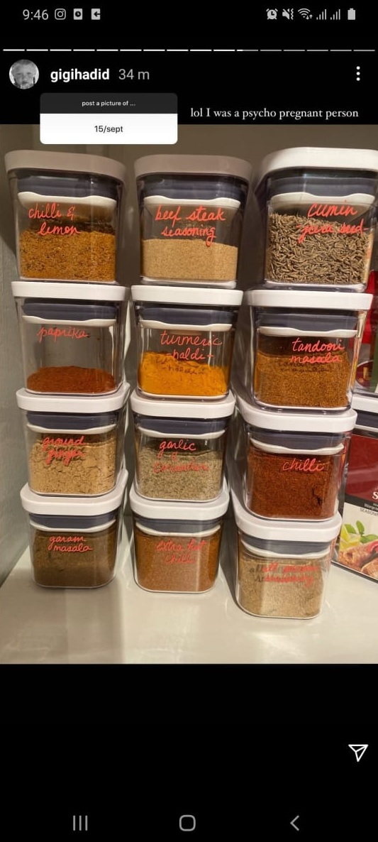It looks Hadid has become a huge fan of desi spices. Recently she shared a click on her Instagram and people immediately noticed the Pakistani brand Shan Masala. There is tikka, tandoori, seekh kabab and garam masala in the collection. Even the turmeric container is